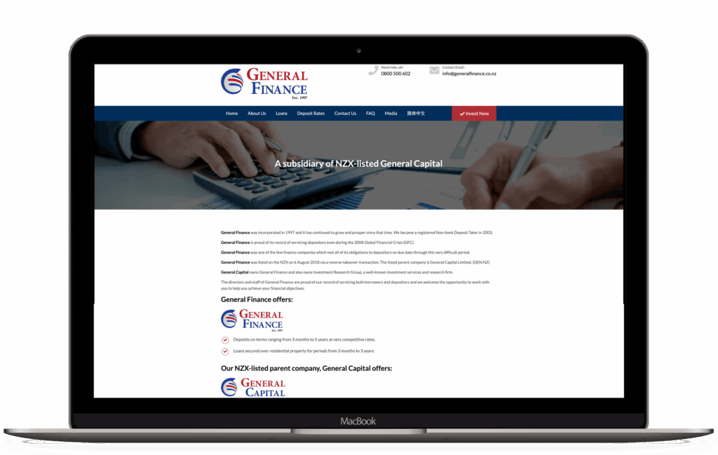 The new brand unifies General Finance and General Capital under a single, distinctly New Zealand identity. It projects clarity, strength and credibility across all platforms, from web and investor reports to advertising and communications, reinforcing both businesses’ reputation for integrity and reliability.